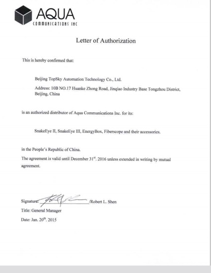 2015年1月20日,北京凌天成為美國AQUA公司蛇眼生命探測儀總代理