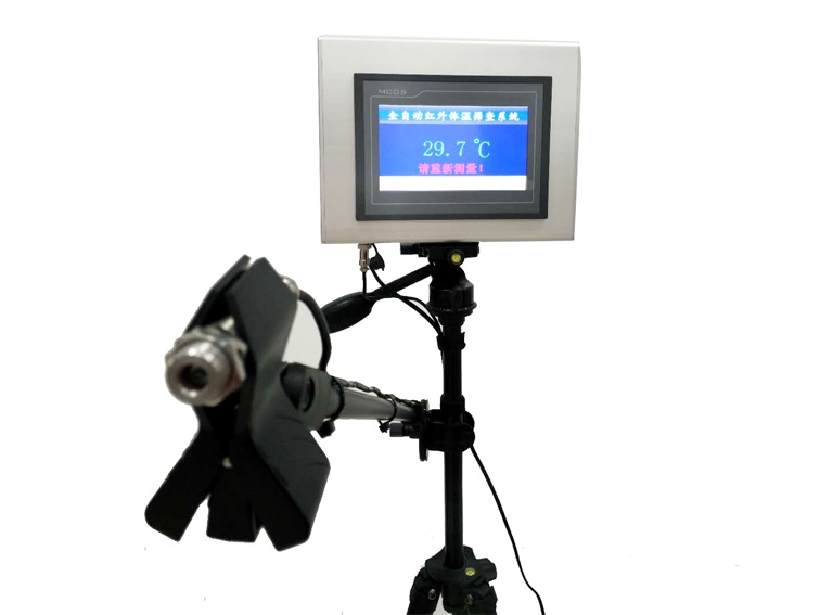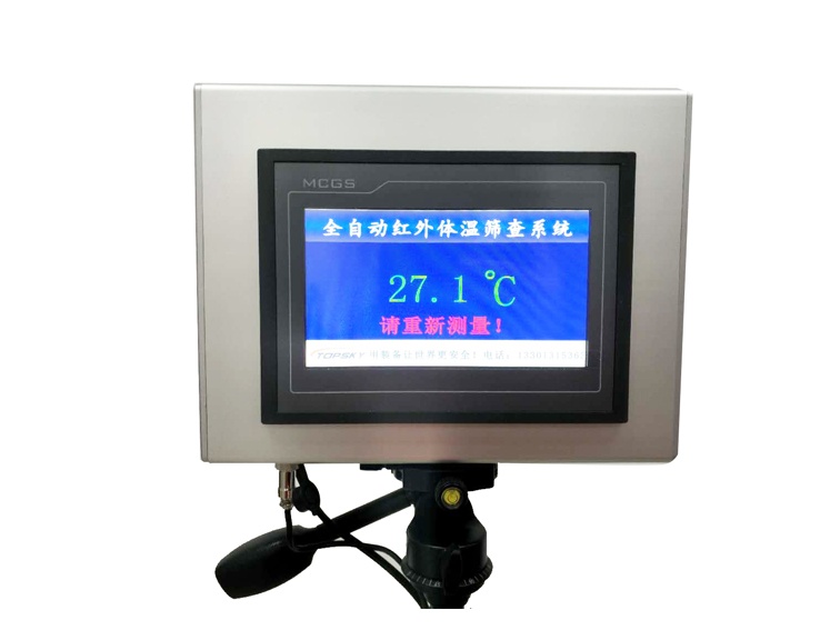 全自動紅外體溫篩查系統(tǒng)是由非接觸式紅外探頭,傳感器,光 學系統(tǒng),智能檢測控制系統(tǒng),高清7寸觸摸顯示屏等部分組成.能夠 在不接觸人體的情況下,依據人體發(fā)射紅外輻射強度,轉換成實際 的溫度數值,并通過人機交互界面進行顯示和報警.高清屏幕顯示, 可保證測量結果清晰可見,高溫聲光報警有助于工作人員快速篩 查可疑人員;該產品可以同三腳架搭配 使用,方便攜帶和快速部署,可應用于機 場、港口、車站、學校、賓館和醫(yī)院等 公共場所的體溫篩檢;