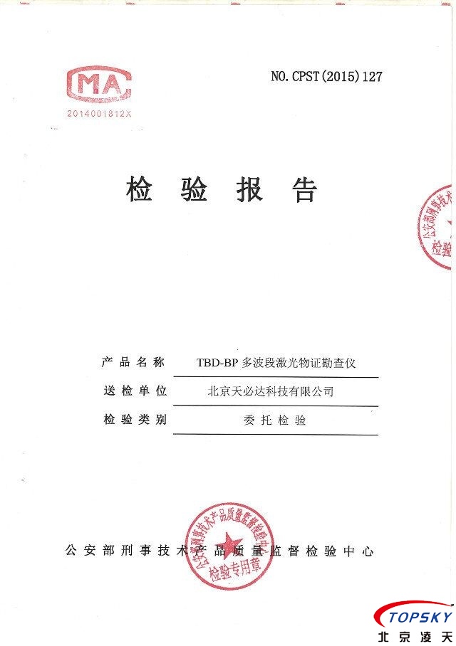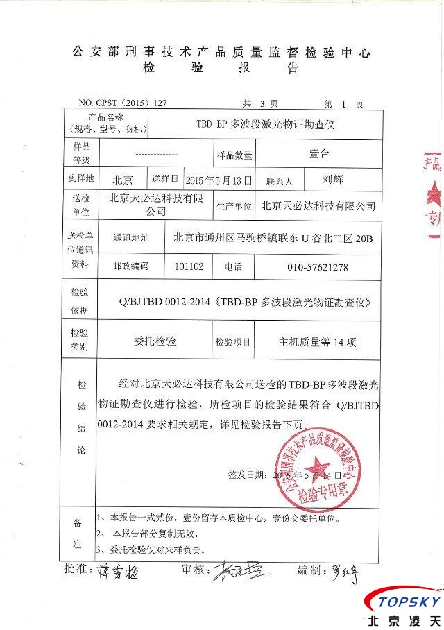 北京天必達(dá)自主研發(fā)多波段激光物證勘察儀取得公安部檢測報告