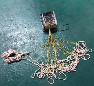 工藝流程參數(shù):勾體粗2.2mm外徑26.8mm長(zhǎng)度72.8mm,單枚凈重3.14g,一套滾鉤50枚,長(zhǎng)度約5米,主線采用2.5mm回籠線,子線采用雙絞線