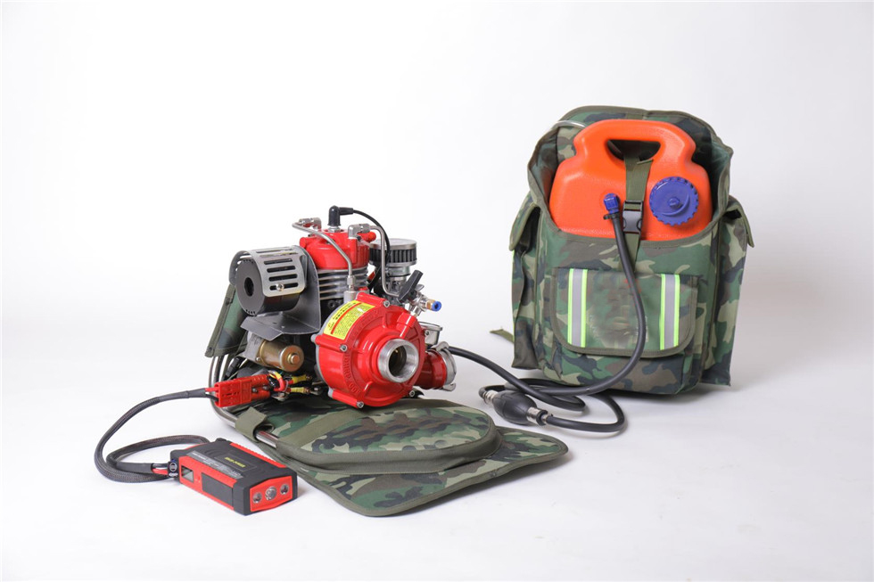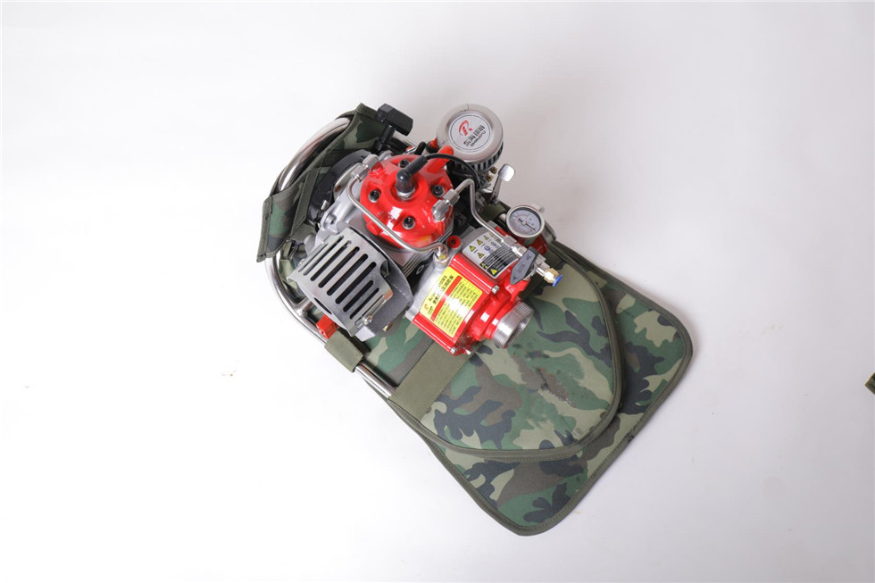 ⑿配有兩套專用水泵和油箱的雙肩高檔背包,更方便攜帶和翻山越嶺的行軍,此背包可以快速拆卸,避免背帶系統(tǒng)接觸水源,防止消防員背負(fù)時弄濕衣服,冬季可減少衣服和背包結(jié)冰的幾率。