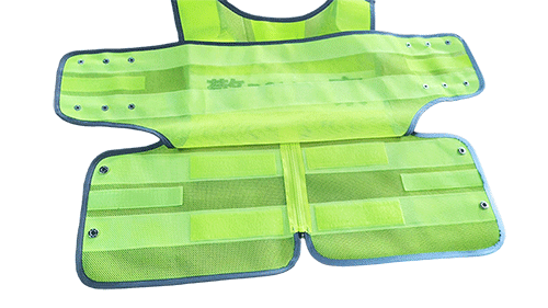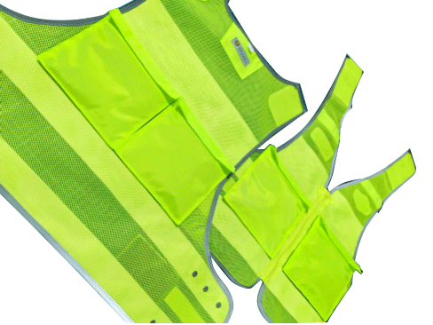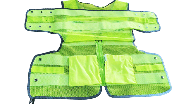 具有整潔美觀,平服的特點,線路規(guī)整,左右對稱,無開線、斷線、跳線、毛露、線頭、污漬、殘疵。產(chǎn)品基底顏色為熒光黃色;反光帶顏色為銀白色;縫紉線顏色應(yīng)與縫合部位的基底材料或反光材料顏色相匹配;前后晶格標識可絲印定制文字