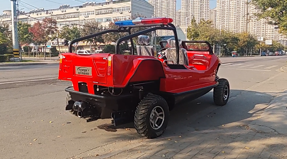 在復(fù)雜惡劣的地形條件和自然環(huán)境下,水陸兩棲車可以讓搜救隊(duì)員和攜帶的救援裝備快速到達(dá)救援現(xiàn)場(chǎng),減少徒步帶來(lái)提供消耗,完成最后一公里最好五分鐘緊急救援任務(wù)。水陸兩棲車可配備點(diǎn)到絞盤、救援擔(dān)架組件、探照燈、警示燈、警報(bào)器、脫鉤、破拆工具等裝備, 給救援團(tuán)隊(duì)提供救援保障,更安全的解救傷員和疏散群眾。