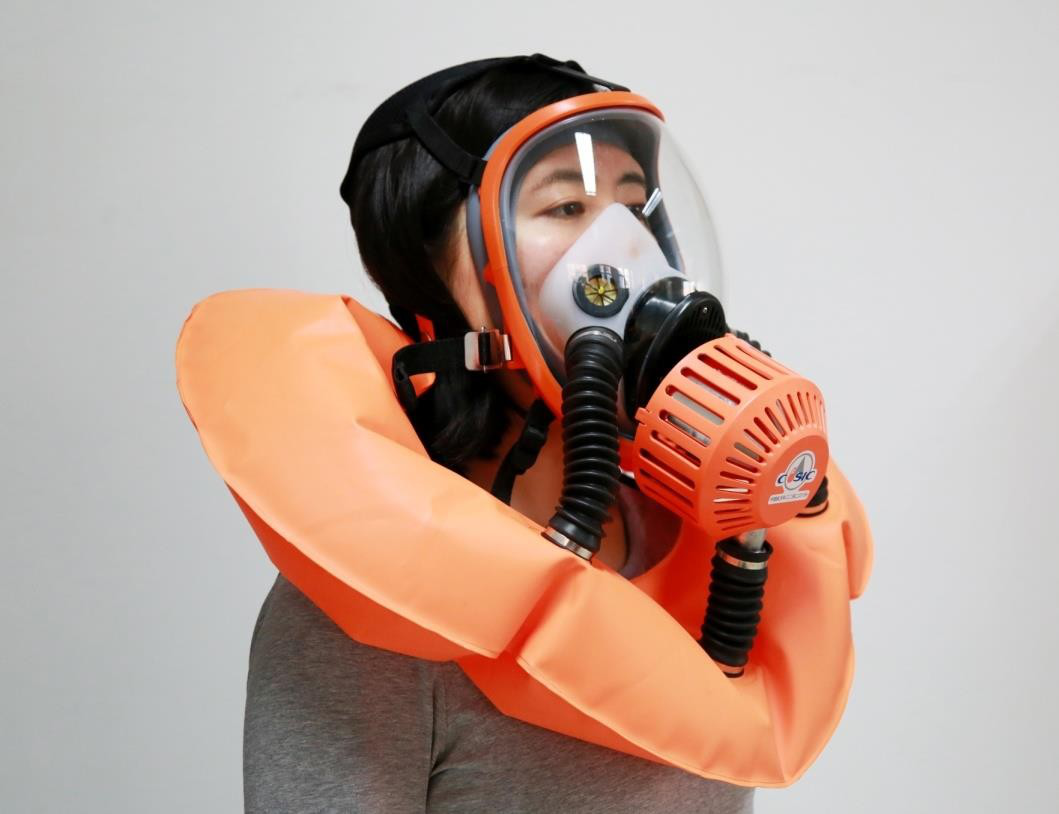 產品采用了航天空氣再生技術、空氣可控緩釋技術、一體化熱控技術,實現(xiàn)了小型化、便攜式、內循環(huán)空氣再生,可長時間提供安全、高效、舒適的呼吸防護,核心指標優(yōu)于國家標準及其他類產品約 50% 以上。該產品有效解決了現(xiàn)有過濾式逃生面罩“安全性能極差”、消防呼吸器“使用復雜”、“效費比低”等痛點問題,具備消防火場救援、公眾佩戴逃生自救等多重應急救援功效。