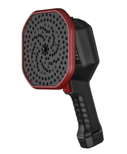 本產(chǎn)品是一款手持式的工業(yè)聲學(xué)成像儀,廣泛應(yīng)用于電力局放,帶壓或真空條件下的氣體泄漏檢測、氣密性檢測、設(shè)備異響定位等多種場景。儀器利用麥克風(fēng)陣列波束形成技術(shù)獲取聲源分布數(shù)據(jù),并配合高清攝像頭實時采集視頻畫面,通過將聲源分布數(shù)據(jù)同視頻圖像進(jìn)行聲像融合,把變化的聲源動態(tài)的呈現(xiàn)在顯示屏上。 可以幫助現(xiàn)場巡檢人員快速定位故障,提供處置依據(jù)。